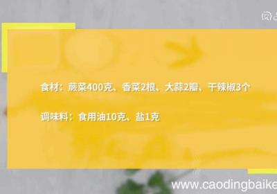 步骤1准备食材:蕨菜400克、香菜2根、大蒜2瓣、干辣椒3个、食用油10克、盐1克 。步骤2锅中水沸、下蕨菜、焯水30秒、捞出、沥干备用 。步骤3蕨菜沥干水分、切成段 。步骤4香菜切段、大蒜拍碎、切末 。步骤5干辣椒剪段 。步骤6热锅倒油、...