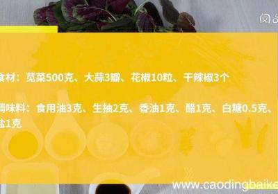 步骤1食材:苋菜500克、大蒜3瓣、花椒10粒、干辣椒3个 。调味料:食用油3克、生抽2克、香油1克、醋1克、白糖0.5克、盐1克 。步骤2苋菜洗净,切断,水沸后放入锅里,加1克盐,煮3分钟,捞出,过凉水,沥干水分备用 。步骤3大蒜切末 。...
