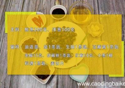 步骤1准备食材:鱿鱼200克、洋葱100克、油适量、盐1茶匙、生抽1茶匙、豆瓣酱1茶匙、泡椒15克、胡椒粉1茶匙、红椒10克、小葱1根、料酒1茶匙、生姜1块 。步骤2鱿鱼洗净切段 。步骤3洋葱去皮切丝 。步骤4红椒切丝 。步骤5小葱切葱花...