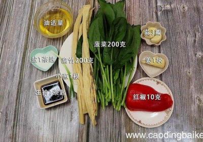 步骤1准备食材:菠菜200克、腐竹200克、红椒10克、油适量、盐1茶匙、生抽1茶匙、小葱1根、蒜3瓣、姜1块 。【菠菜炒腐竹的做法 菠菜炒腐竹怎么做好吃】步骤2菠菜洗净切段 。步骤3腐竹洗净切段 。步骤4红椒切丝 。步骤5小葱切葱花 。步...