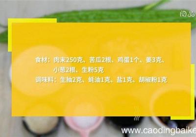 步骤1食材:肉末250克、苦瓜2根、鸡蛋1个、姜3克、小葱2根、生粉5克、生抽2克、蚝油1克、盐1克、胡椒粉1克 。步骤2苦瓜切段,去瓤 。步骤3姜切末 。步骤4小葱切末 。【苦瓜肉馅的做法 苦瓜肉馅怎么做】步骤5肉末中加入鸡蛋 。步骤6加...