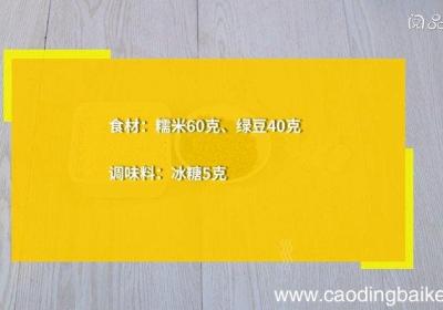 步骤1食材:糯米60克、绿豆40克 。调味料:冰糖5克 。步骤2绿豆用清水浸泡5小时 。步骤3糯米用清水浸泡2小时 。步骤4砂锅中放入绿豆、糯米,加入600毫升清水,中小火煮50分钟 。【绿豆糯米粥的做法 绿豆糯米粥怎么做】 步骤5盛出 。...
