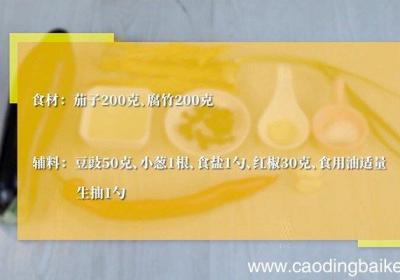 步骤1准备食材:茄子200克、腐竹200克 。辅料:豆豉50克、小葱1根、食盐1勺、红椒30克、食用油适量、生抽1勺 。步骤2茄子洗净,切条 。步骤3腐竹提前用水泡发,然后捞出,切成小段 。步骤4红椒切丝,小葱切葱花 。步骤5锅烧热,放少许...
