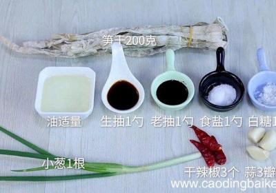 发布时间: 8小时前步骤1准备食材:笋干200克、小葱1根、干辣椒3个、大蒜3瓣、食盐1勺、生抽1勺、老抽1勺、白糖1勺、油适量 。步骤2笋干提前用清水泡发 。步骤3锅中倒水烧开,把泡好的笋干放锅里,煮20分钟 。步骤4将笋干捞出沥干水分,切成小块 。步骤5小...
