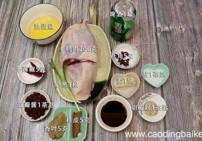 步骤1准备食材:鸭肉200克、啤酒1罐、油适量、八角5克、豆瓣酱1茶匙、桂皮5克、香叶5克、干辣椒5克、姜1块、盐1茶匙、胡椒粉1茶匙、小葱1根 。步骤2鸭肉洗净剁成块 。步骤3姜切片 。步骤4小葱切葱花 。步骤5首先锅内倒水,水热倒入鸭肉...