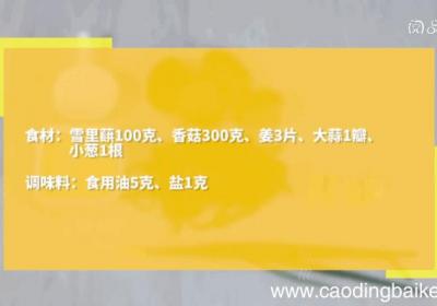 步骤1准备食材:雪里蕻100克、香菇300克、姜3片、大蒜1瓣、小葱1根、食用油5克、盐1克 。步骤2雪菜先浸泡两个小时,中间换两次水清洗,去掉一部分盐分,捞出,挤去水分,切成小段 。【香菇炒雪里蕻做法香菇炒雪里蕻怎么做】步骤3香菇切丁,大...