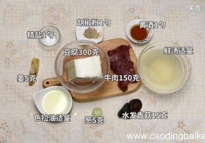 【牛肉酿豆腐的做法 牛肉酿豆腐怎么做】步骤1准备食材:豆腐300克、牛肉150克、水发香菇15克、葱5克、姜5克、精盐1勺、黄酒1勺、胡椒粉1勺、鲜汤适量、色拉油适量 。步骤2把葱切成葱花 。步骤3姜切末 。步骤4香菇切成粒备用 。步骤5豆...