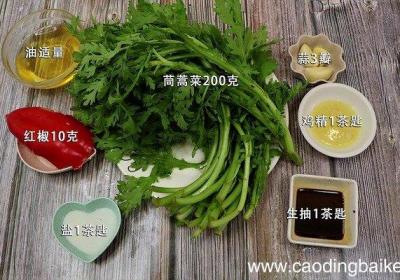 步骤1准备食材:茼蒿菜200克、红椒10克、油适量、鸡精1茶匙、盐1茶匙、蒜3瓣、生抽1茶匙 。【油泼茼蒿菜的做法 油泼茼蒿菜怎么做好吃】 步骤2茼蒿摘成段,洗净备用 。步骤3红椒切丁 。步骤4蒜切末 。步骤5首先锅内倒水,放入食盐大火烧开...
