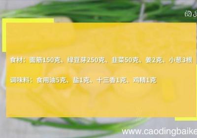 【绿豆芽和面筋 绿豆芽和面筋怎么炒】步骤1食材:面筋150克、绿豆芽250克、韭菜50克、姜2克、小葱3根调味料:食用油5克、盐1克、十三香1克、鸡精1克步骤2面筋切成小块 。步骤3韭菜切段 。步骤4姜切丝步骤5小葱切段 。步骤6热锅倒油、...