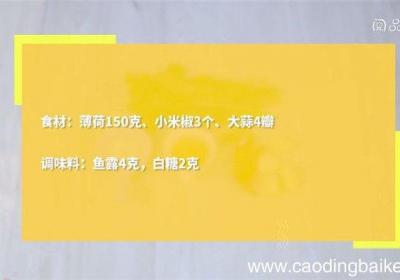 步骤1食材:薄荷150克、小米椒3个、大蒜4瓣调味料:鱼露4克,白糖2克步骤2薄荷洗净,装入盘中 。步骤3小米椒切末 。步骤4大蒜切片 。步骤5取小碗,放入鱼露、白糖、小米椒、蒜片,拌匀,淋在薄荷上即可 。【凉拌薄荷怎么做 凉拌薄荷做法是什...