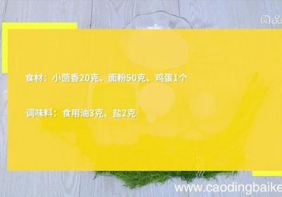 步骤1食材:小茴香20克,面粉50克,鸡蛋1个 。调味料:食用油3克,盐2克 。步骤2小茴香切末 。步骤3打入鸡蛋、盐,搅拌均匀 。再加入面粉,40毫升清水,搅拌成稀糊状 。步骤4平底锅中倒入食用油,油温4成热时,倒入调好的面糊 。步骤5单...