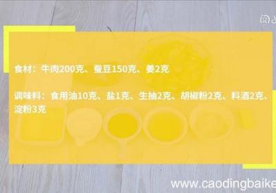 步骤1食材:牛肉200克,蚕豆150克,姜2克调味料:食用油10克,盐1克,生抽2克,胡椒粉2克,料酒2克,淀粉3克【牛肉炒蚕豆 牛肉炒蚕豆怎么做】步骤2牛肉切小丁 。步骤3加料酒、淀粉,拌匀,腌制15分钟 。步骤4姜切末 。步骤5热锅倒油...