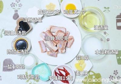 步骤1准备食材:排骨300克、盐1茶匙、陈醋1茶匙、酱油1汤匙、淀粉适量、白芝麻5克、干辣椒15克、姜1块、蒜3瓣、水淀粉适量、鸡蛋黄1个、油适量 。步骤2姜切片 。步骤3干辣椒切段 。【怪味排骨的做法】步骤4蒜切片 。步骤5排骨放入容器中...