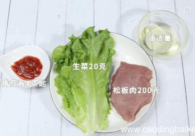 【松板肉做法松板肉怎么做】步骤1准备食材:松板肉200克、生菜20克、番茄酱1茶匙、油适量 。步骤2起锅倒油,油热后,将松板肉放入油锅中炸至熟透 。炸好后,夹出控油 。步骤3生菜切丝摆盘备用 。步骤4将炸好的松板肉切片,放入生菜盘中,挤上番...