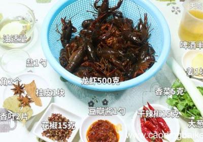 步骤1准备食材:龙虾500克、大葱50克、姜1块、干辣椒15克、盐1勺、啤酒半罐、豆瓣酱1勺、香叶2片、八角2个、桂皮1块、香菜5克、花椒15克、油适量 。步骤2小龙虾用刷子洗净 。步骤3剪掉头部 。步骤4再从尾部去掉虾线 。步骤5大葱切段...