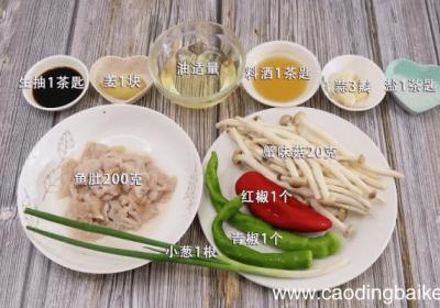 步骤1准备食材:鱼肚200克、蟹味菇20克、料酒1茶匙、姜1块、生抽1茶匙、蒜3瓣、红椒1个、青椒1个、盐1茶匙、油适量、小葱1根 。步骤2鱼肚洗净备用 。步骤3姜切末 。【脆炒鱼肚的做法 脆炒鱼肚怎么做好吃】步骤4蒜切末 。步骤5青椒切圈...