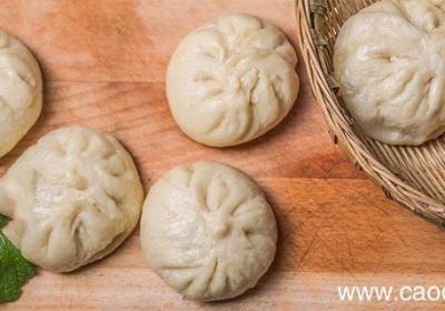 葱切葱花,姜切碎 。葱花、姜、清水放料理机中打成葱姜水 。猪肉剁成肉馅,葱姜水加肉馅中 。调入盐、鸡精、胡椒粉和老抽 。香葱放肉馅中,盖保鲜膜冷藏 。面粉、糖、泡打粉、酵母拌匀,加温水揉匀,醒发 。面揉好分成面剂子,按扁 。面皮放入猪肉馅收...