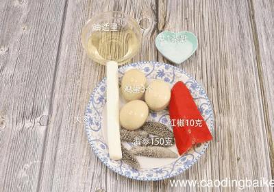 步骤1主要材料:海参150克、鸡蛋3个、大葱1段、油适量、盐1茶匙、红椒10克 。步骤2【海参跑蛋的做法 海参跑蛋怎么做好吃】海参用清水清洗,切条备用 。步骤3大葱切片 。步骤4红椒切小块 。步骤5鸡蛋打入碗中,放入少许盐、搅拌均匀备用 。...