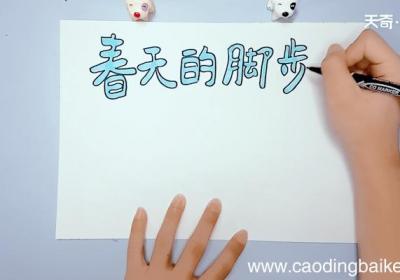 1、首先在顶部写上“春天的脚步”的标语 。2、然后在中间画一个拿着漏网抓蝴蝶的小女孩 。3、接着在右边画菱形写字框 。4、接下来在左下角画圆形写字框 。5、之后在空白处画直线 。6、最后把画好的元素都涂上相应的颜色即可 。【春天的手抄报 春...