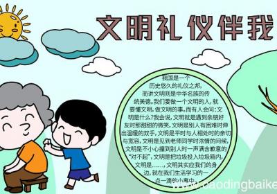 1、首先在顶部写上“文明礼仪伴我行”的标语,再画老奶奶、小男孩 。2、然后在图中画上树、太阳、云和写字框 。3、之后把画好的元素涂上相应的颜色 。4、最后在写字框内写上文字即可 。【文明礼仪伴我行手抄报 文明礼仪伴我行的手抄报怎么画】...