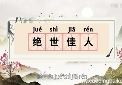 【读音】 jué shì jiā rén【释义】 当代最美的女人 。【故事】汉朝时期,中山李氏兄妹三人到京城长安发展,李延年进入皇宫乐(yuè)府,他向汉武帝推荐他妹妹,说她是绝世佳人,一见倾城,再顾倾国 。汉武帝十分高兴,就召见李延年的妹...