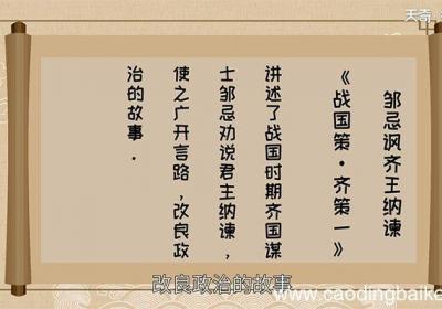 邹忌讽齐王纳谏中讽的意思指下级对上级以委婉曲折的言语进行规劝 。【邹忌讽齐王纳谏的讽的意思 邹忌讽齐王纳谏的讽的意思】《邹忌讽齐王纳谏》出自《战国策·齐策一》,讲述了战国时期齐国谋士邹忌劝说君主纳谏,使之广开言路,改良政治的故事 。文章塑造...