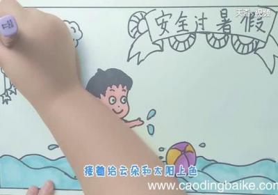 1、先画上一个在游泳的小男孩,再在男孩的面前画上一个球,再画一些波浪还有水花 。2、画上白云和太阳,再写上我们的主题字,再给主题字画上边框,再给边框的周围画上一些小装饰,就可以开始上色了 。【安全过暑假手抄报 暑假手抄报内容】3、先给小男孩...
