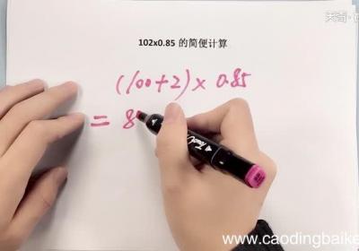 102×0.85=(100+2)×0.85=85+1.7=86.7一百零二乘以零点八五的简便计算,一百零二是一百加二,然后这个等式就等于一百加二,乘以零点八五,等于这个和它相乘,八十五加上一点七等于八十六点七 。【102x0.85的简便运算...