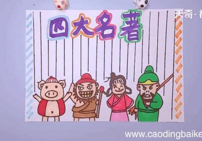 1、首先在顶部写上“四大名著”的标语 。2、然后在底部画猪八戒、张飞、林黛玉、关羽 。【四大名著手抄报 四大名著手抄报怎么画】3、之后在空白处画直线 。4、最后把画好的元素都涂上相应的颜色即可 。...
