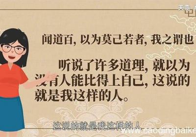 发布时间: 9小时前“闻道百,以为莫己若者,我之谓也”意思是:听说了许多道理,就以为没有人能比得上自己,这说的就是我这样的人 。这句话出自《庄子·外篇》中的《秋水》篇 。庄子是战国时期著名的思想家、哲学家、文学家,是道家学派的代表人物,先秦庄子学派的创始人 。...