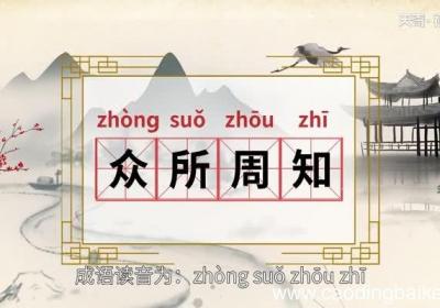 【读音】 zhòng suǒ zhōu zhī【释义】 大家都知道 。【出处】 《玉娇梨》第二十回:“城中宣杂难住,莫苦就在众所周知石村卜一居,与白公为邻 。”【近义词】尽人皆知 家喻户晓 无人不知【反义词】一无所知【众所周知的意思 众所周...