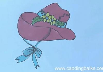 1、我们先画出帽子上的花花草草 。2、接着把帽子的形状画出来 。3、再画出蝴蝶结就可以开始上色啦 。4、把帽子用粉色涂满,把蝴蝶结用蓝色涂满 。5、花花草草就涂上自己喜欢的颜色就完成啦 。【花花帽简笔画】...