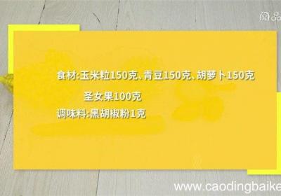 步骤1食材:玉米粒150克、青豆150克、胡萝卜150克、圣女果100克、黑胡椒粉1克 。步骤2胡萝卜切小丁 。步骤3【美国杂菜的做法 美国杂菜怎么做】圣女果对半切开 。步骤4沸水锅中放入胡萝卜、青豆、玉米粒焯煮10分钟,捞出,沥干水分 。...