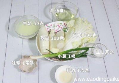 发布时间: 6小时前步骤1准备食材:菱白300克、白菜100克、牛奶50克、料酒1汤匙、盐1茶匙、味精1茶匙、小葱1根、油适量步骤2小葱切葱花 。步骤3菱白切滚刀块 。步骤4白菜切成块备用 。步骤5茭白在开水锅中煮5分钟,捞出控干水分 。步骤6起锅倒入油,烧温...