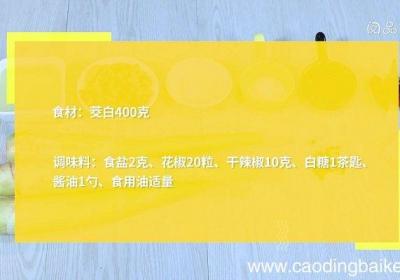 发布时间: 6小时前步骤1食材:茭白400克 。辅料:冰糖10克、食盐2克、花椒20粒、干辣椒10克、白糖1茶匙、酱油1勺、食用油适量 。步骤2将茭白的老根、老皮去掉,对半剖开,切成1寸左右的条状 。步骤3干辣椒切成段 。步骤4锅中放入足够多的油,烧至6成热后...
