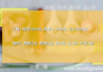 发布时间: 5小时前步骤1主料:排骨300克、茭白200克、胡萝卜100克 。辅料:姜1块、小葱1根、盐2克、鸡精2克、料酒5克 。【排骨炖茭白的做法 排骨炖茭白怎么做】步骤2姜切片 。步骤3葱切葱花 。步骤4茭白洗净切滚刀块 。步骤5胡萝卜去皮洗净切滚刀块...