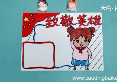 发布时间: 4小时前1、首先在右上角写上“致敬英雄”的标语 。【英雄先烈手抄报 英雄先烈手抄报怎么画】2、然后在左上角画国旗 。3、接着在右边画一个敬礼的小女孩 。4、接下来在左边画两个菱形写字框 。5、之后在空白处画直线 。6、最后把画好的元素都涂上相应的颜...