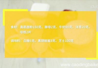 发布时间: 8小时前步骤1【家常芝士披萨 家常芝士披萨的做法】食材:高筋面粉150克、酵母2克、牛奶90克、洋葱20克、培根2片 。调味料:白糖5克、黑胡椒酱3克、芝士100克 。步骤2面粉中加入酵母、牛奶、白糖,揉成光滑面团,醒发至2倍大 。步骤3擀成面饼,...