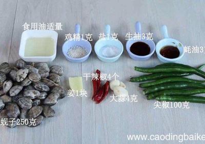 发布时间: 8小时前步骤1准备食材:蚬子250克、尖椒100克、姜1块、大蒜4克、干辣椒4个、生抽3克、蚝油3克、盐1克、鸡精1克、食用油适量 。步骤2蚬子肉洗净沥干水分备用 。步骤3尖椒洗净切粒 。步骤4姜切末 。步骤5蒜切末 。步骤6干辣椒剪成段 。步骤7...