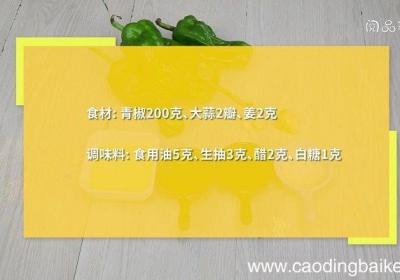 发布时间: 8小时前步骤1食材:青椒200克、大蒜2瓣、姜2克调味料:食用油5克、生抽3克、醋2克、白糖1克步骤2青椒去蒂去籽 。步骤3大蒜切末 。步骤4姜切末 。步骤5炒锅中油温5成热时,下入青椒炒出虎皮,加入蒜末、姜末炒香 。步骤6放入生抽、醋、白糖,炒匀...