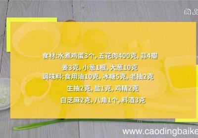 发布时间: 8小时前步骤1食材:水煮鸡蛋3个,五花肉400克,蒜4瓣,姜3克,小葱1根,大葱10克、食用油10克,冰糖5克,老抽2克,生抽2克,盐1克,鸡精2克,白芝麻2克,八角1个,料酒3克 。步骤2五花肉切方块 。步骤3蒜对半切开 。步骤4姜切片 。步骤5...