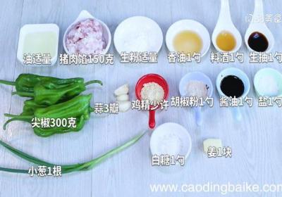 发布时间: 8小时前步骤1准备食材:尖椒300克、猪肉馅150克、姜1块、蒜3瓣、小葱1根、生抽1勺、胡椒粉1勺、生粉适量、酱油1勺、料酒1勺、鸡精少许、白糖1勺、盐1勺、香油1勺、油适量 。步骤2小葱切葱花 。步骤3蒜切末 。步骤4姜切末 。步骤5猪肉馅加入...