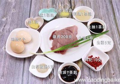 发布时间: 14小时前步骤1准备食材:猪肉200克、鸡蛋2个、小葱1根、姜1块、盐1茶匙、鸡精1茶匙、料酒1茶匙、生抽1茶匙、生粉5克、枸杞10克、蚝油1茶匙、白胡椒粉5克 。步骤2猪肉洗净剁成肉泥 。步骤3小葱切葱花 。步骤4姜切末 。步骤5盆中加入剁好的肉泥...