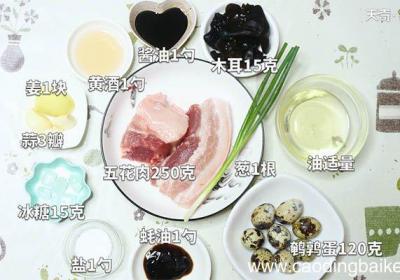 发布时间: 14小时前步骤1准备食材:五花肉150克、鹌鹑蛋120克、水发木耳15克、姜1块、蒜3瓣、葱1根、酱油1汤匙、黄酒1汤匙、冰糖15克、蚝油1茶匙、盐1茶匙、油适量 。步骤2姜切片 。步骤3蒜拍扁 。步骤4葱切葱花 。步骤5五花肉切块 。【元宝红烧肉的...