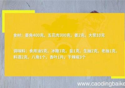 发布时间: 14小时前【菱角红烧肉的做法 菱角红烧肉怎么做】步骤1食材:菱角400克、五花肉300克、姜2克、大葱10克调味料:食用油5克、冰糖3克、盐1克、生抽2克、老抽1克、料酒2克、八角1个、香叶1片、干辣椒3个步骤2用刀将菱角切成两半,取出菱角肉,姜切片...