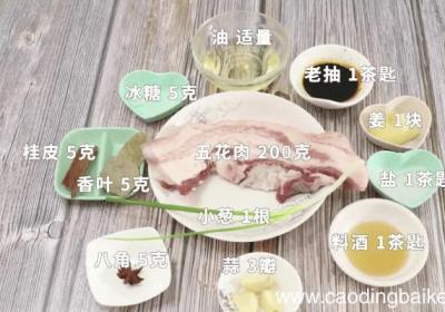 发布时间: 14小时前步骤1食材:水煮鸡蛋3个,五花肉400克,蒜4瓣,姜3克,小葱1根,大葱10克、食用油10克,冰糖5克,老抽2克,生抽2克,盐1克,鸡精2克,白芝麻2克,八角1个,料酒3克 。步骤2五花肉切方块 。步骤3蒜对半切开 。步骤4姜切片 。步骤5...