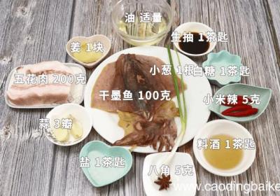 发布时间: 14小时前步骤1准备食材:干墨鱼100克、五花肉200克、小葱1根、姜1块、蒜3瓣、油适量、盐1茶匙、八角5克、白糖1茶匙、料酒1茶匙、生抽1茶匙、小米辣5克 。步骤2【墨鱼干烧肉 墨鱼干烧肉的做法】干墨鱼用清水浸泡后1小时切丝 。步骤3五花肉洗净切...