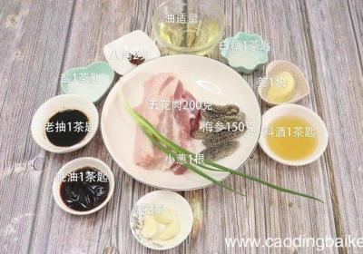 发布时间: 15小时前步骤1主要材料:海参150克、五花肉200克、油适量、小葱1根、八角2克、白糖1茶匙、盐1茶匙、姜1块、老抽1茶匙、料酒1茶匙、蚝油1茶匙、蒜3瓣 。步骤2海参用清水清洗 。步骤3五花肉洗净切块 。步骤4姜切片 。步骤5小葱切葱花 。步骤6...