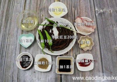 发布时间: 15小时前步骤1准备食材:水发豇豆200克、五花肉100克、蒜3瓣、小葱1根、青椒10克、干红辣椒5克、油适量、盐1茶匙、蚝油1茶匙、花椒粉1茶匙、生抽1茶匙、鸡精1茶匙 。步骤2豇豆洗净切成段 。步骤3五花肉洗净切片 。步骤4青椒切片 。步骤5【豇...