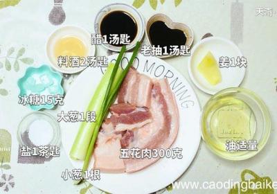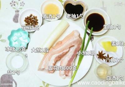 发布时间: 14小时前步骤1准备食材:五花肉300克、大葱1段、姜1块、小葱1根、冰糖15克、生抽1勺、老抽1勺、黄酒1勺、盐1勺、八角2个、花椒5克、白酒1勺 。步骤2大葱切段 。步骤3小葱切葱花 。步骤4姜切片 。步骤5五花肉切块 。步骤6将五花肉块放入砂锅...